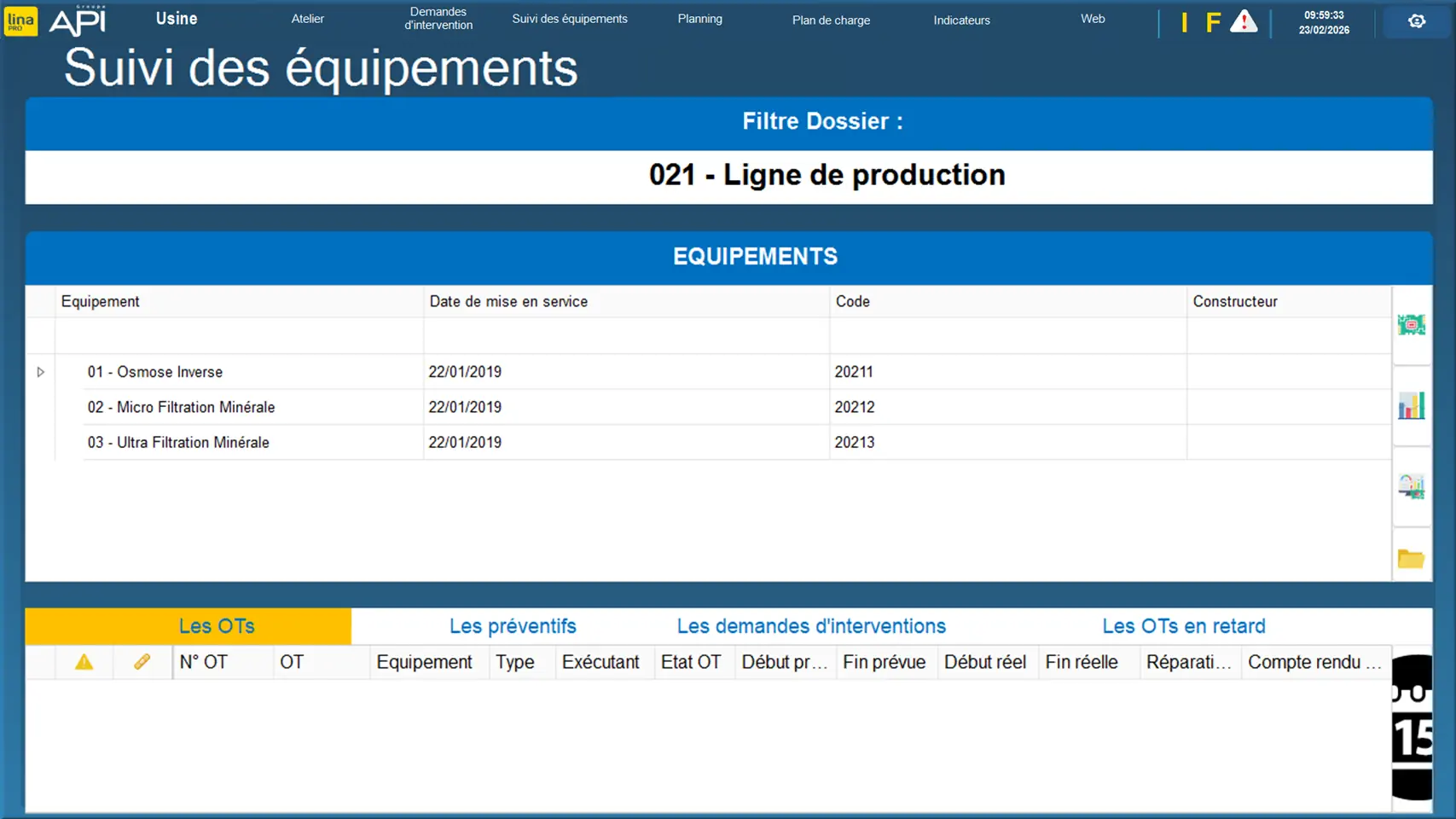 GMAO : Suivi des équipements
