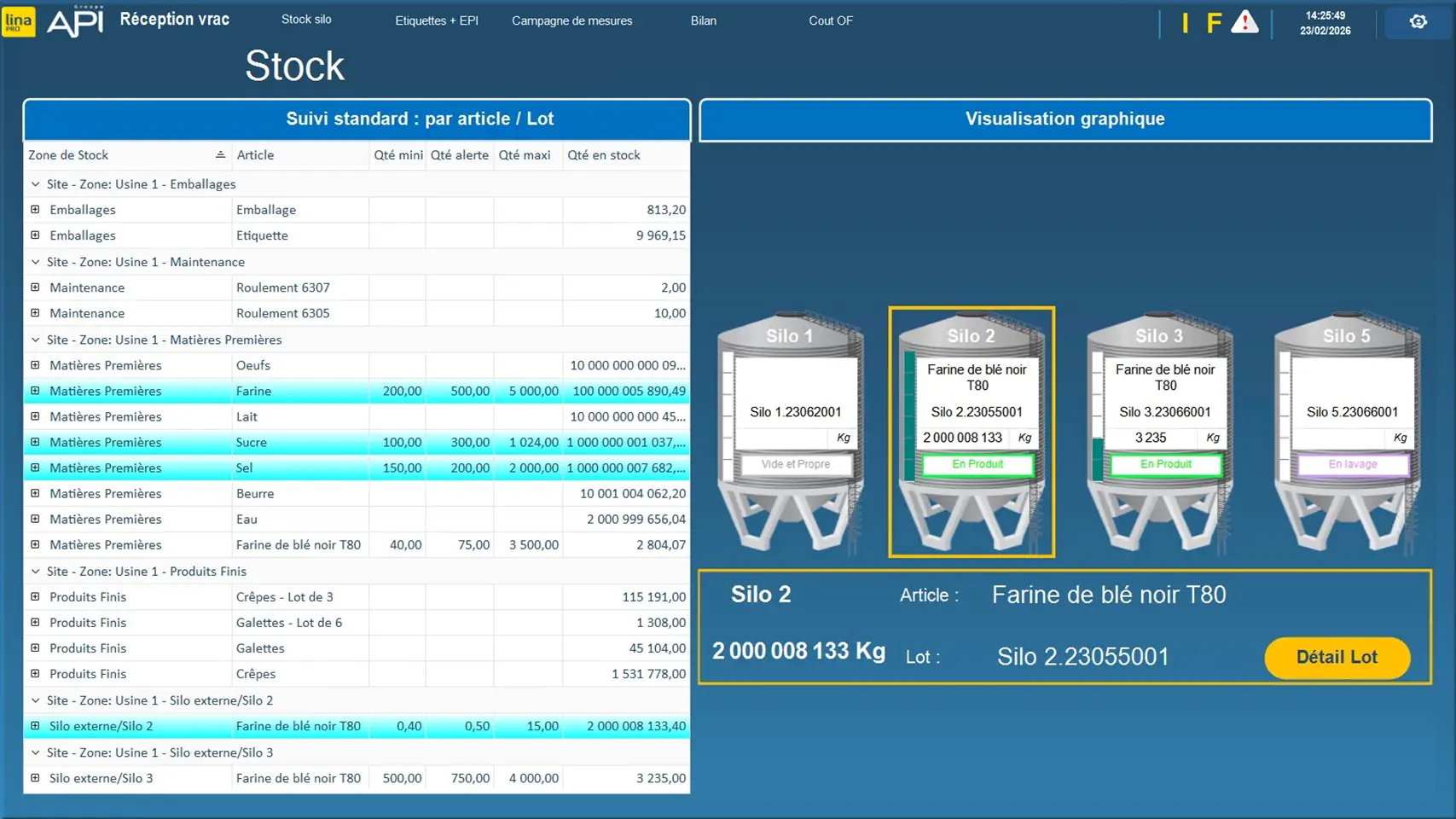 Particularité : Stock silo